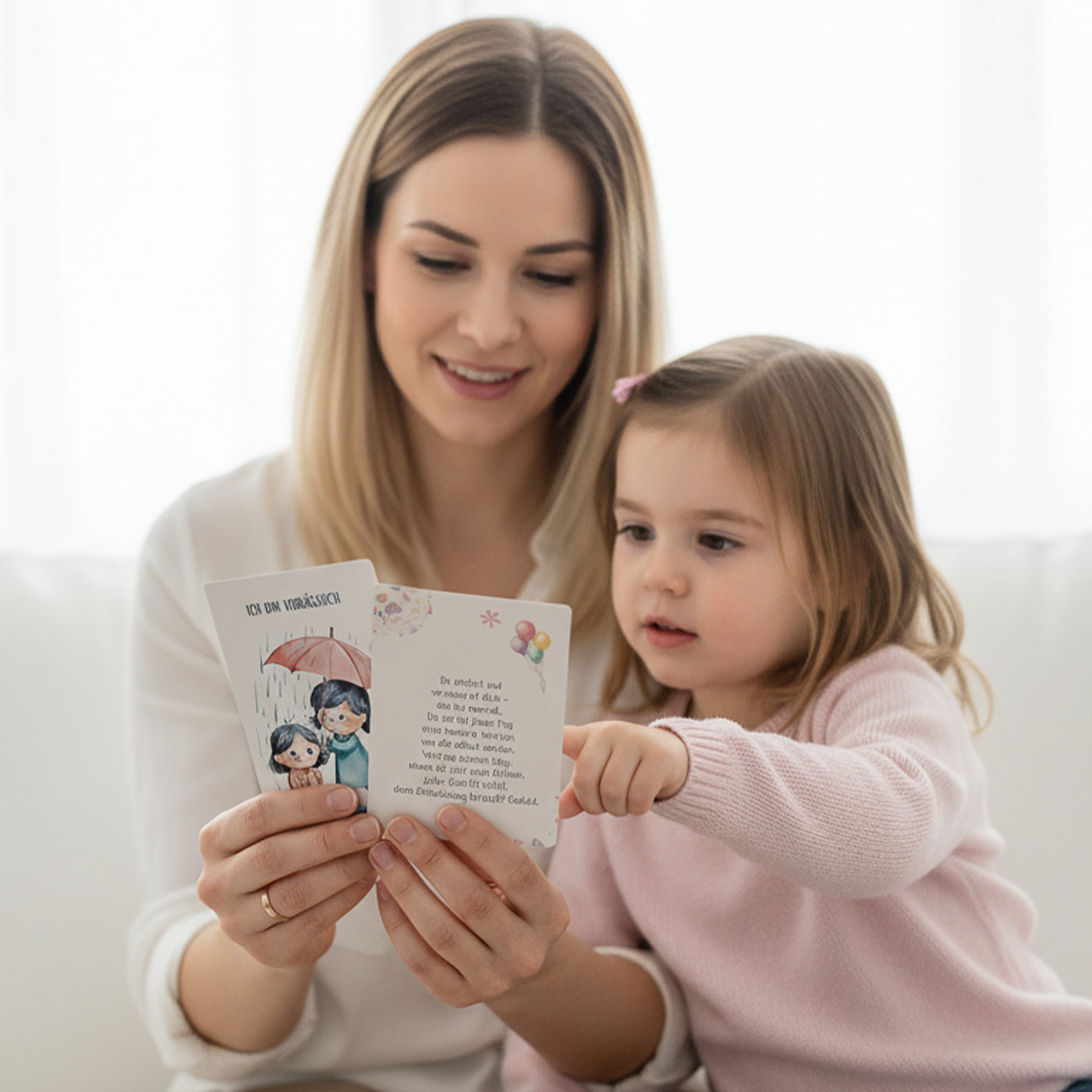 Kinder brauchen Sicherheit – und die entsteht vor allem durch Nähe und gemeinsame Rituale. Unsere Affirmationskarten laden dazu ein, täglich zusammen eine Karte zu ziehen, laut vorzulesen und darüber zu sprechen.