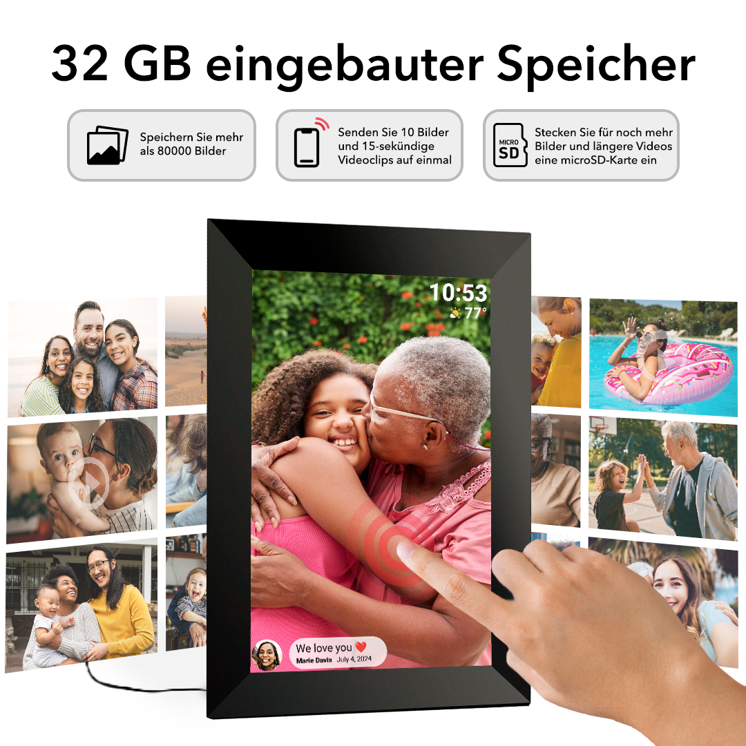 Nie wieder verpasste Momente: Dieser digitale Bilderrahmen ermöglicht es, Fotos und Videos jederzeit kabellos direkt auf das Display zu senden – egal, wo Sie gerade sind. Der großzügige 32 GB Speicher, der erweiterbare SD-Karten-Slot und die Möglichkeit, mehrere Nutzer gleichzeitig zu verbinden, machen das Teilen von Erinnerungen so einfach wie nie zuvor. Ideal für Eltern, Großeltern und alle, die ihre schönsten Augenblicke unkompliziert festhalten und jederzeit ansehen möchten.