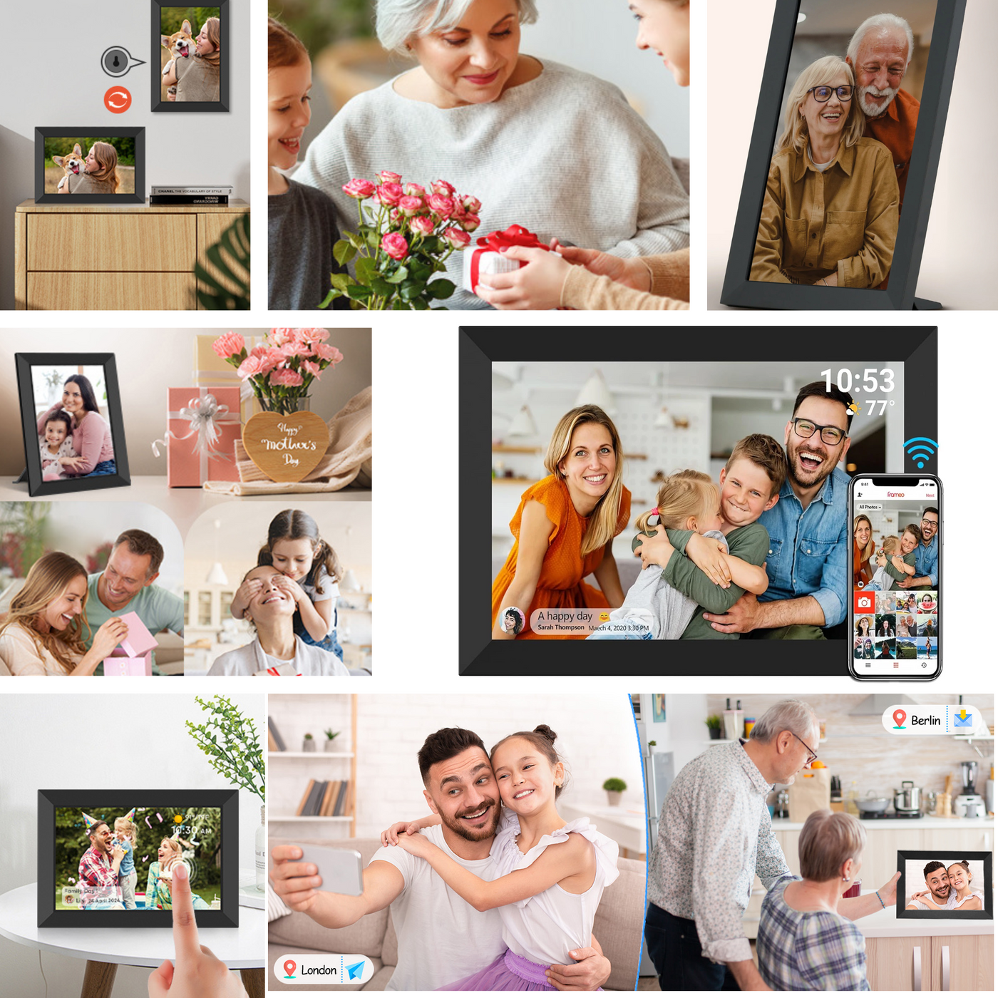 Der digitale WLAN-Bilderrahmen von Filapen mit 10,1-Zoll-Touchscreen ist die ideale Lösung, um Fotos und Videos ganz einfach per App mit Familie und Freunden zu teilen – egal, wo auf der Welt sie gerade sind.